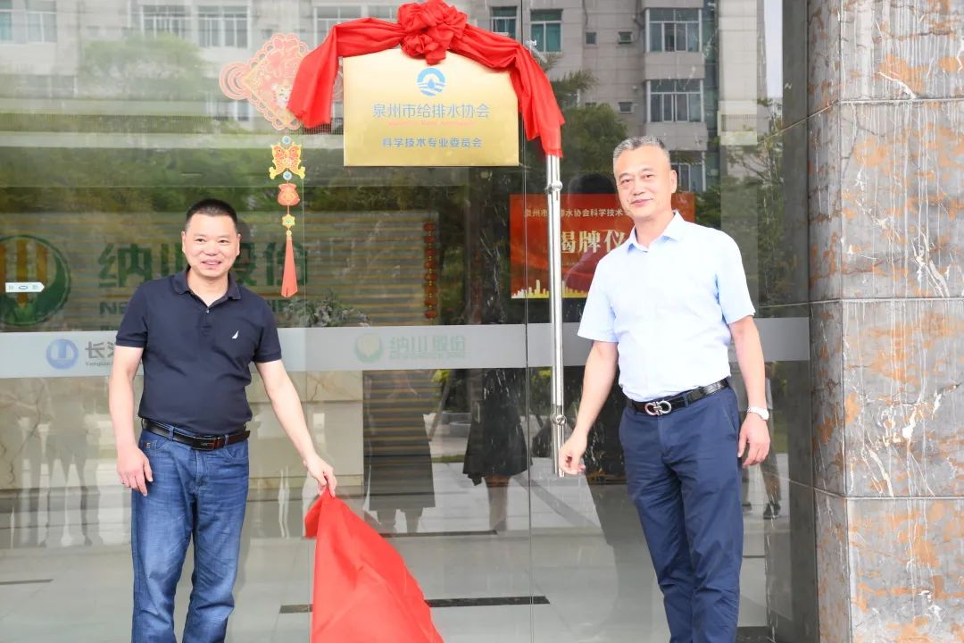 陈纪文会长、肖仁建副总经理共同为泉州市给排水协会科学技术专业委员会揭牌。